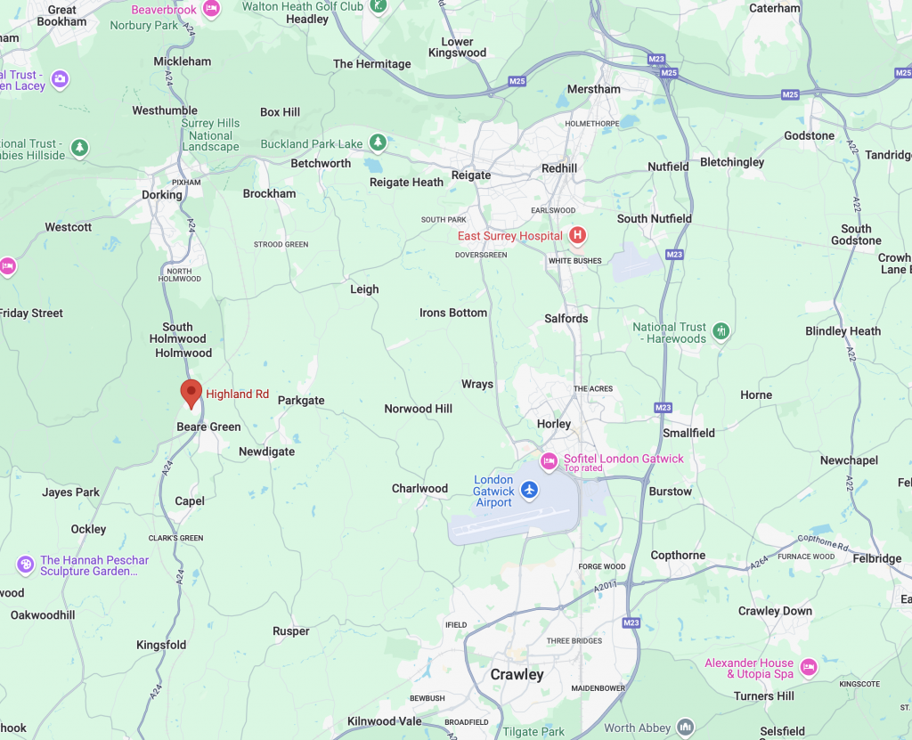 Located in Beare Green, Dorking, Surrey, surrounded by beautiful countryside, parks and lakes, which offer fabulous walking and environmental enrichment opportunities (click map below to view our location and get directions)